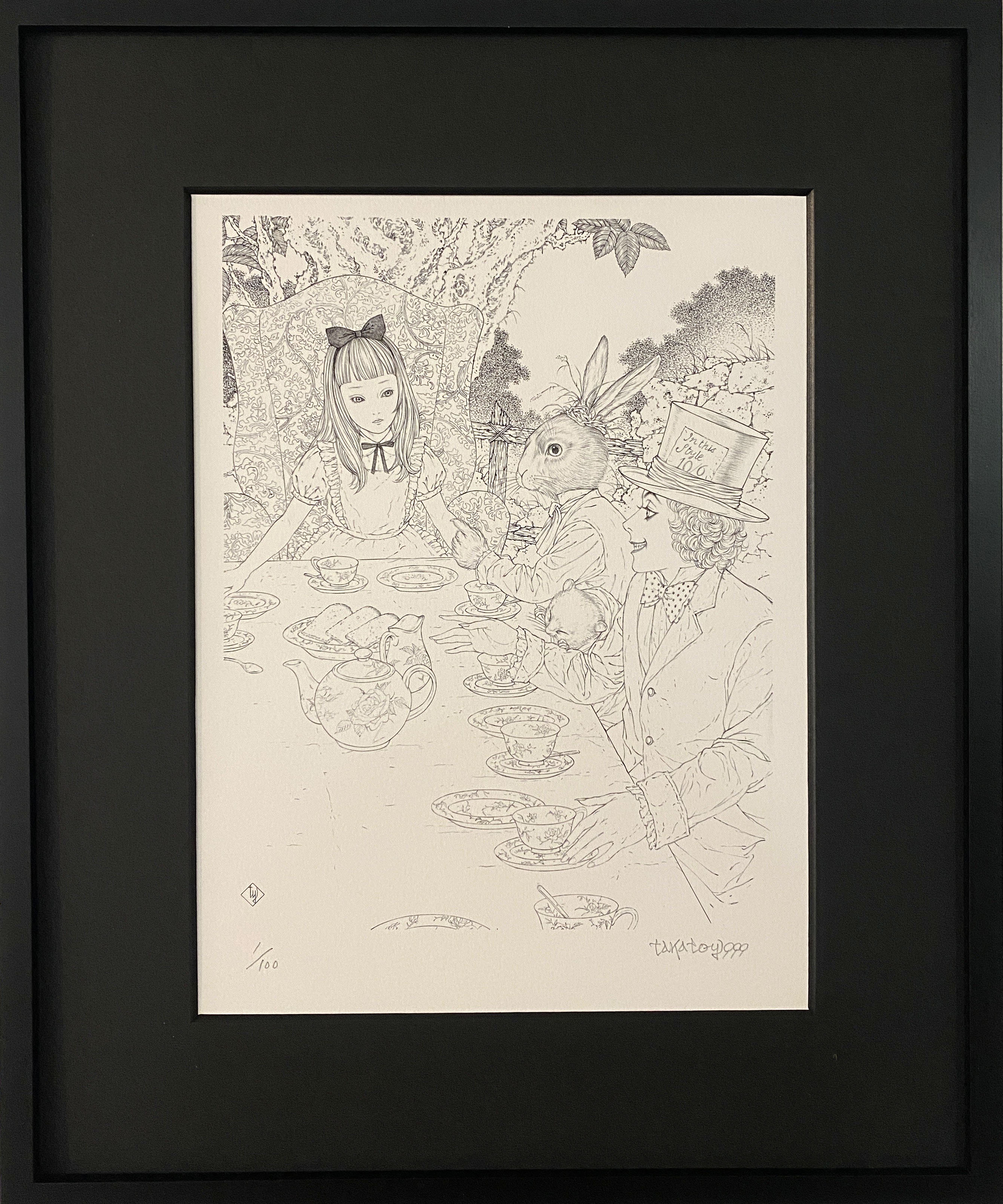 山本タカト 複製画「アリス茶話會モノクロ」